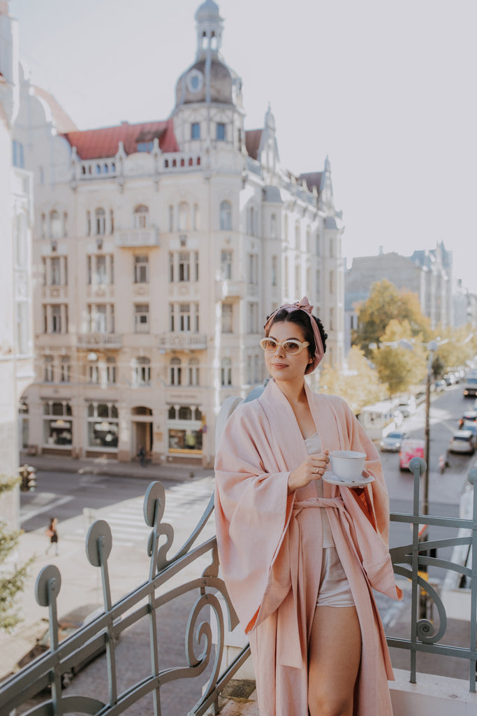 Long pink linen kimono robe