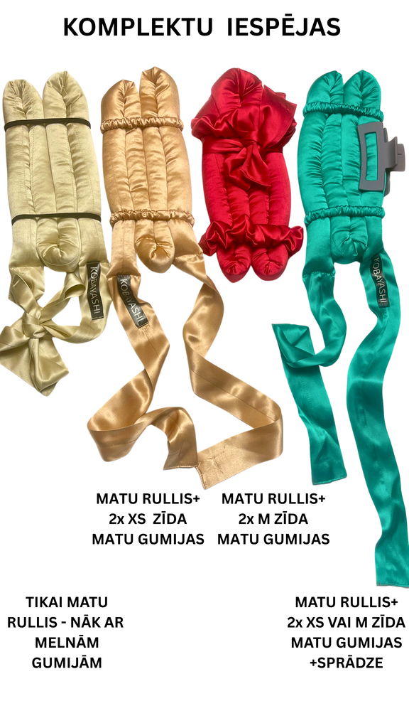 Visiem zīda matu ruļļiem, ja izvēlies komplektu ar zīda matu gumijām - DĀVANĀ ūdensizturiga uzglabāšanas somiņa, kastīte ar zīdpapīru - visiem pirkumiem!