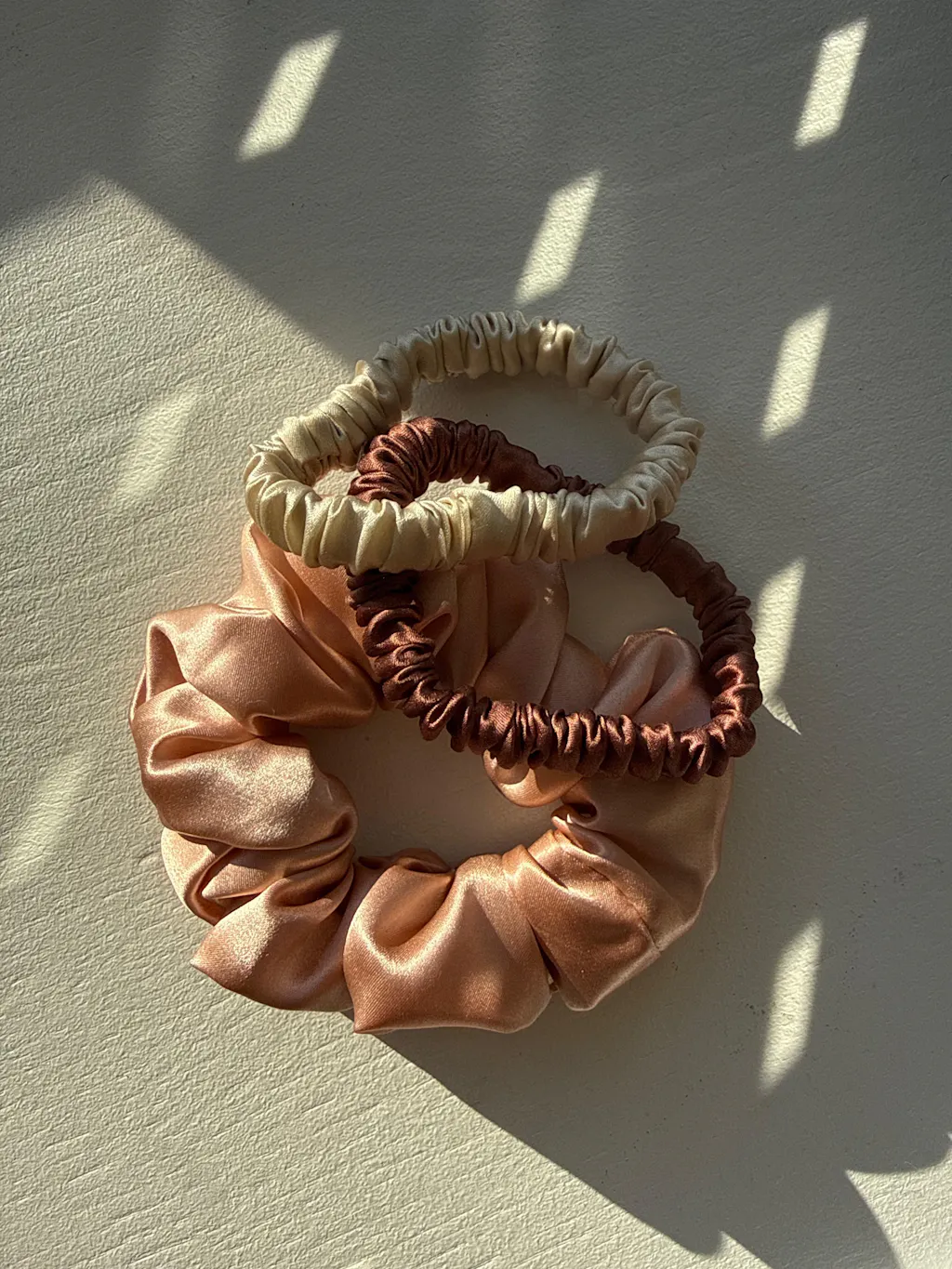 Zīda matu gumija pieejami 3 izmēros . Šī ir M jeb vidējā, 3 gumiju komplekts, kas ir izdevigāks, nekā pērkot katru gumiju atsevišķi.