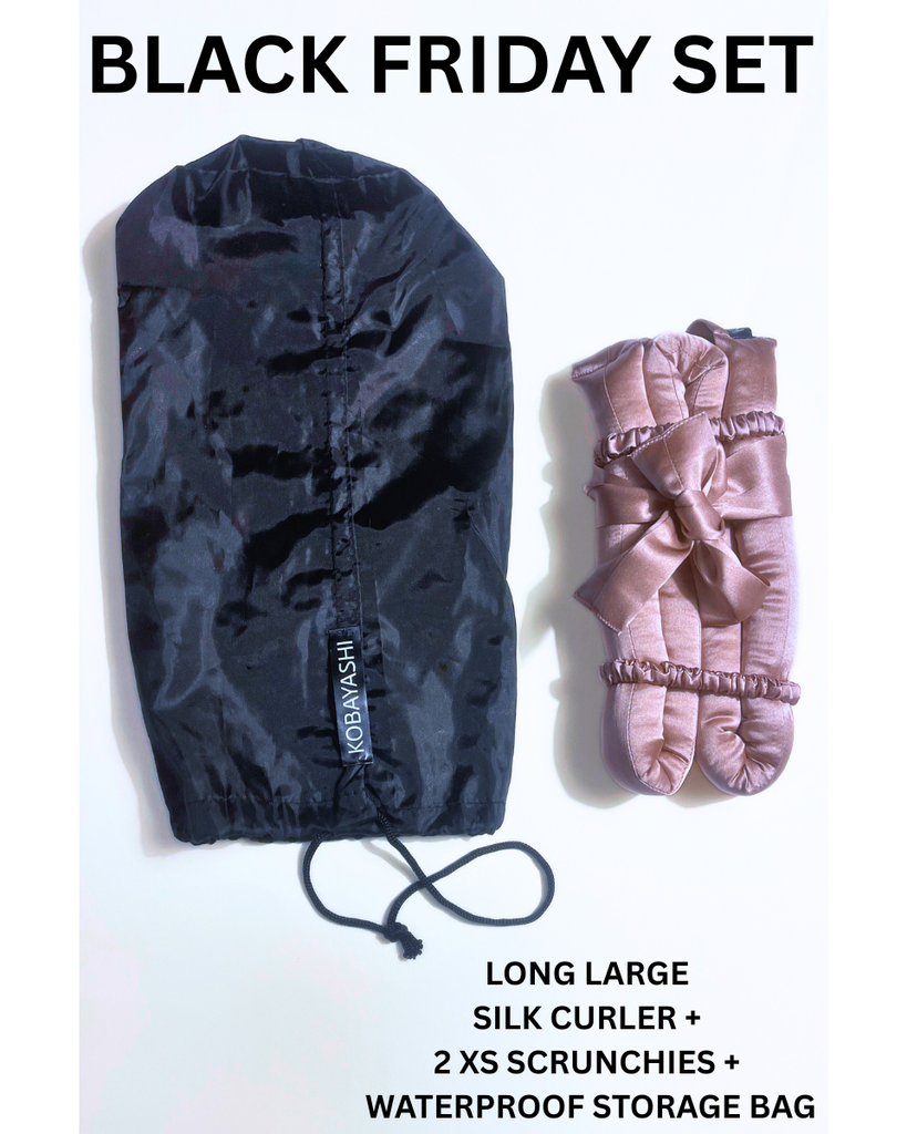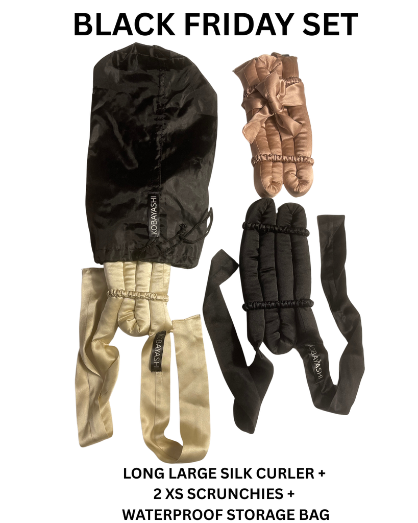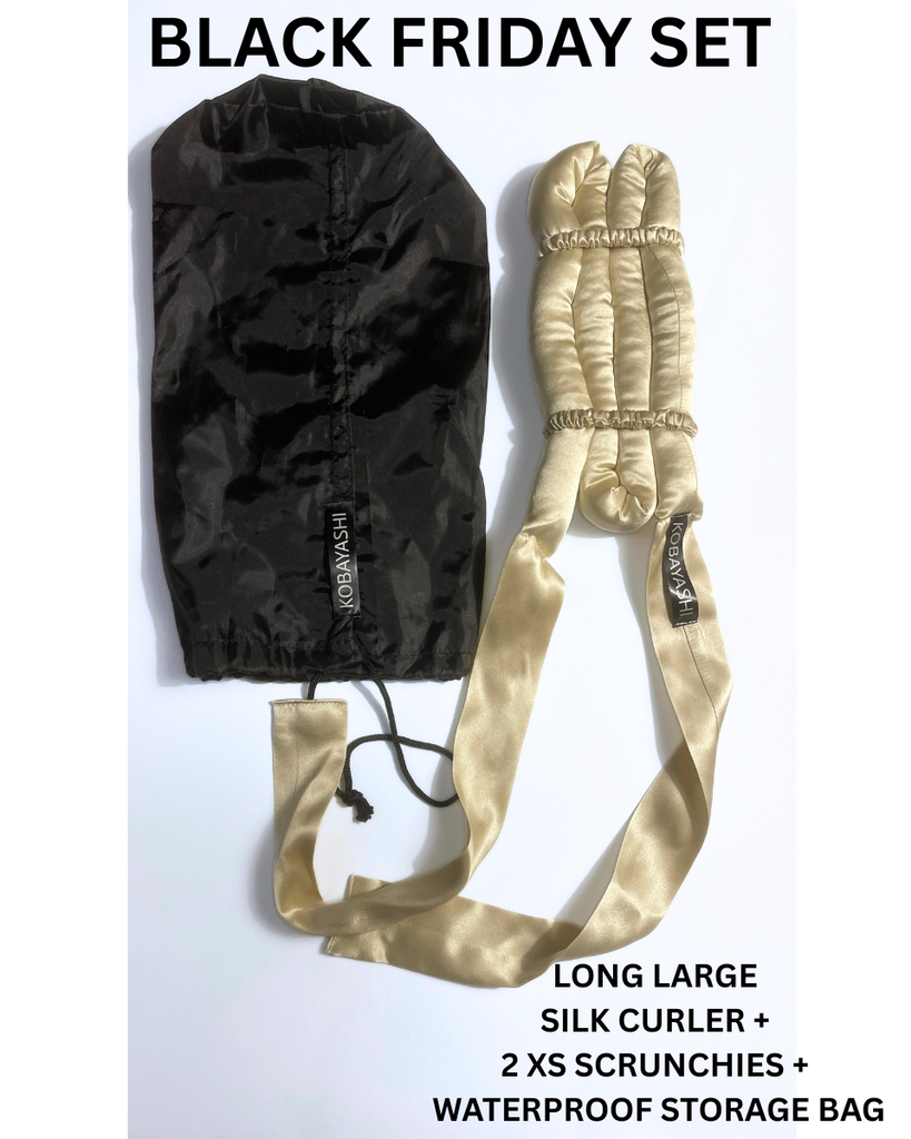 BLACK FRIDAY SET - Long LARGE SILK Heatless hair curler with scrunchies